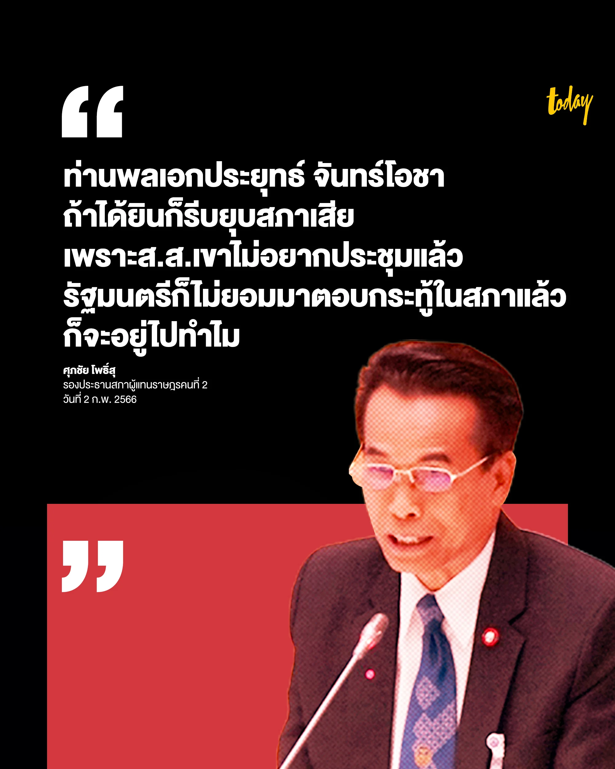 ‘ศุภชัย’ รองประธานสภาฯ เรียกร้องพล.อ.ประยุทธ์ยุบสภา หลังองค์ประชุมล่มถี่ ‘ภูมิใจไทย’ เอาคืนจริง หลังเสียงรัฐบาลไม่ช่วย ร่างพ.ร.บ.กัญชาฯ