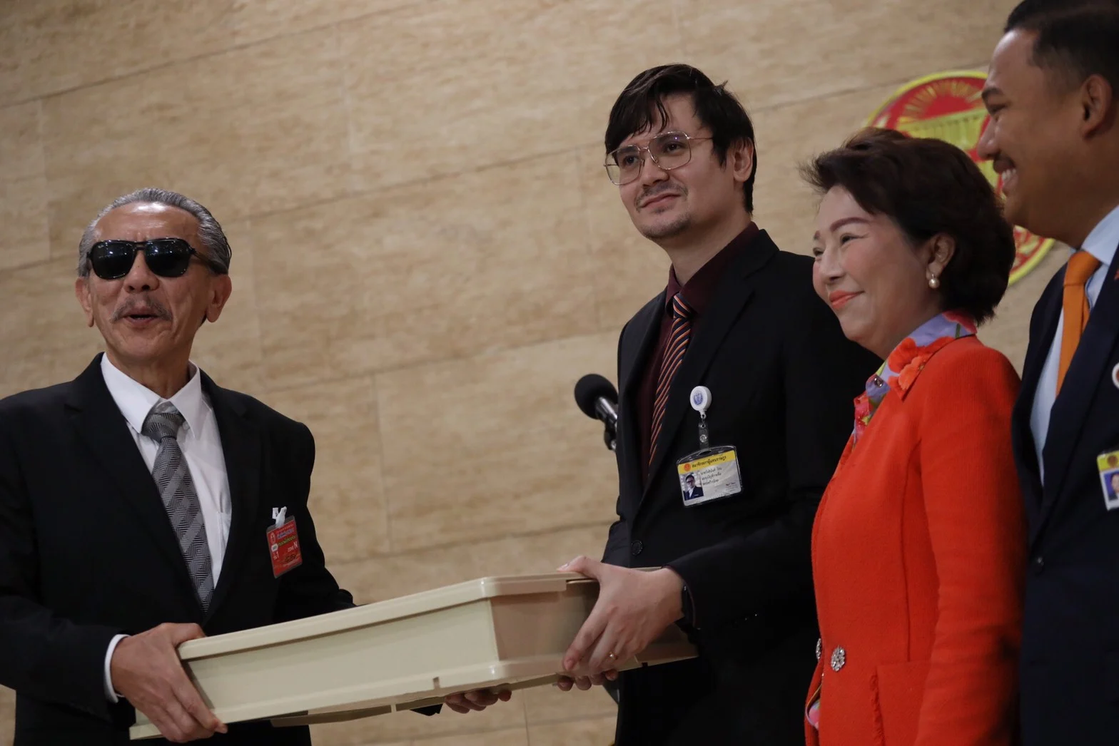 นายรังสิมันต์ โรม ส.ส.บัญชีรายชื่อ และโฆษกพรรคก้าวไกล รับเอกสารหลักฐานกรณีทุนจีนสีเทาจากนายชูวิทย์ กมลวิศิษฎ์ อดีต ส.ส.