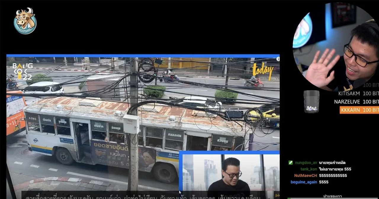 ที่ให้ด่าได้บ้างเนี่ย โอเค เอารวม ๆ ไม่นับว่าเป็นงานของใครก่อน สายสื่อสารที่รกรุงรังนะครับ รถเมล์เก่า ฝาท่อไม่เรียบ กับทางเท้า เส้นจราจร เส้นขาวแดงเลือน แล้วก็มอเตอร์ไซค์บนทางเท้า แล้วก็รถโคตรติดเลย แต่ถ้าเป็นสิ่งที่ทาง กทม. ที่เกี่ยวกับหน้างานเนี่ย ว่าไอ้เรื่องสายสื่อสารเนี่ยมันสามารถร่วมกับ กสทช. ได้ ในการที่จะจัดเก็บนะครับ เรื่องฝาท่อก็ กทม. อยู่แล้ว ก็ต้องมาทําให้มันเรียบรวมถึงทางเท้าที่ผุพัง ส่วนเรื่องการขีดสีตีเส้นสัญญาณขาวแดงหรือเส้นจราจรก็งาน กทม. อยู่แล้วนะครับ เรื่องมอเตอร์ไซค์บนทางเท้าอันนี้ก็งาน กทม. เหมือนกัน ก็สามารถบังคับใช้กฎหมายได้ ซึ่งผมก็ปรับอยู่แล้วทุกครั้งสองพันบาท ส่วนรถเมล์เก่าอันนี้เป็นของ ขสมก. นอกเหนือจากงาน กทม. แต่ว่าถ้าเป็น กทม. ทําเนี่ย ก็เป็นรถบัส Feeder EV เราจะทําเป็นรถใหม่ เพราะฉะนั้นไอ้กงไอเก่านี่ถ้า กทม. ทําคงไม่ได้เห็น