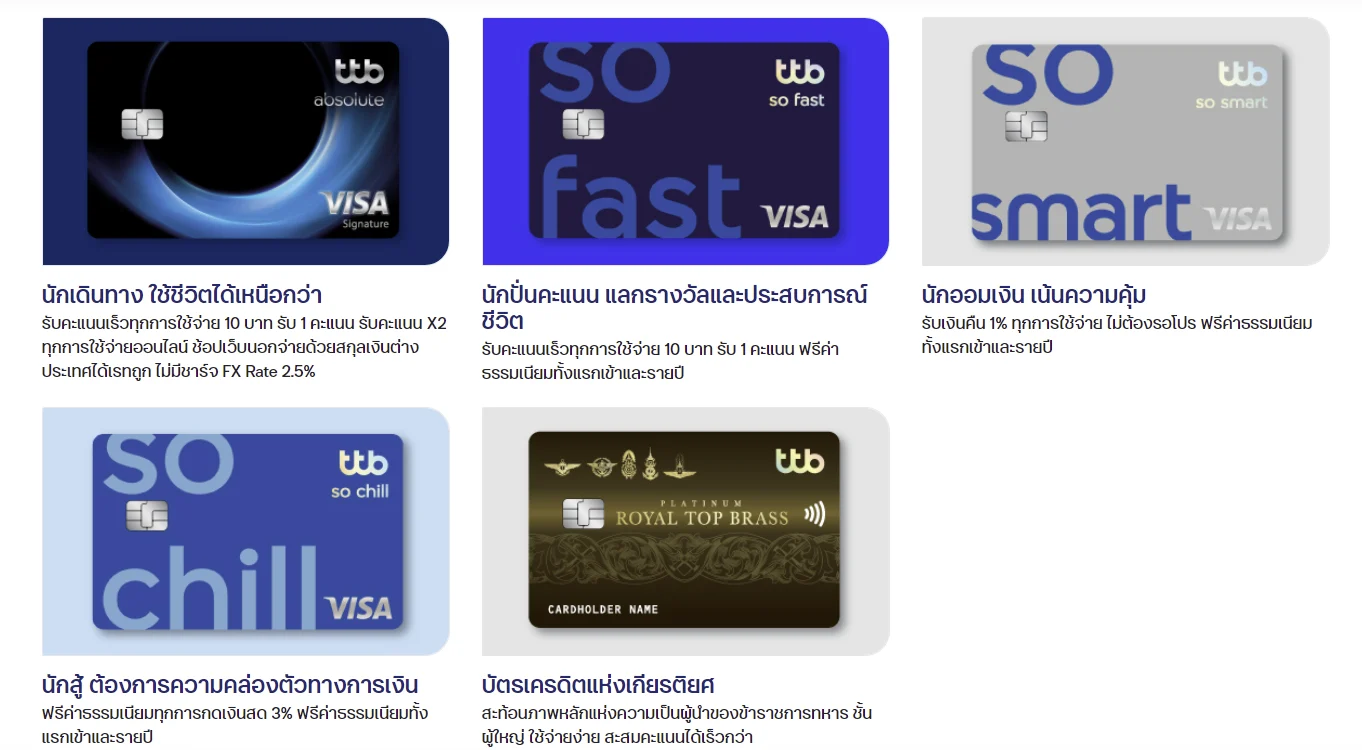 อันที่จริงถ้าดูจากบริการบัตรเครดิตของ ttb ในหน้าเว็บไซต์ มีทั้งหมด 5 ประเภท ได้แก่