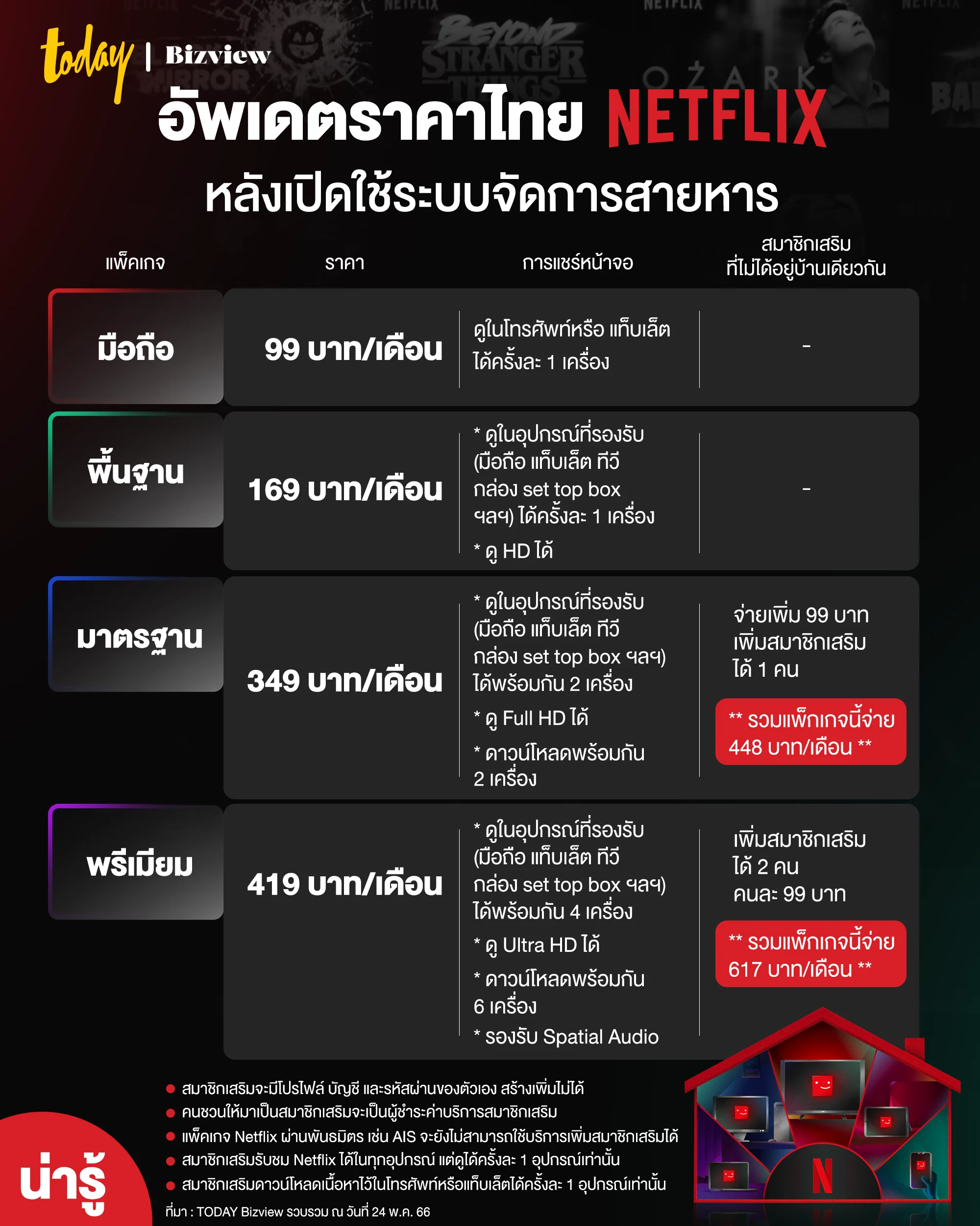 TODAY Bizview กางแผนราคาใหม่ Netflix ให้ดู หลัง Netflix ประเทศไทย ประกาศกลางดึกเมื่อคืนที่ผ่านมาว่า จุดจบสายหารกำลังจะมาถึงแล้ว